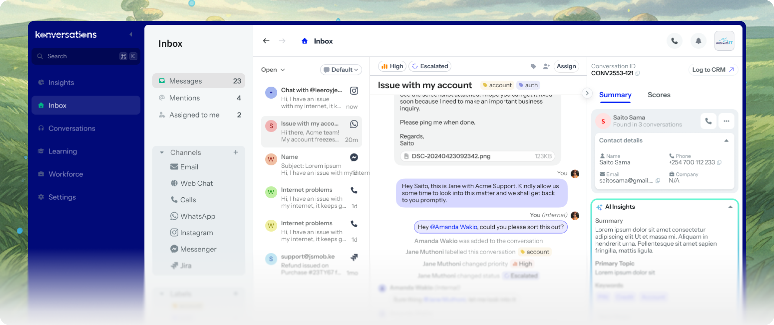 - All conversations from WhatsApp, Instagram, Jira, and more in one place