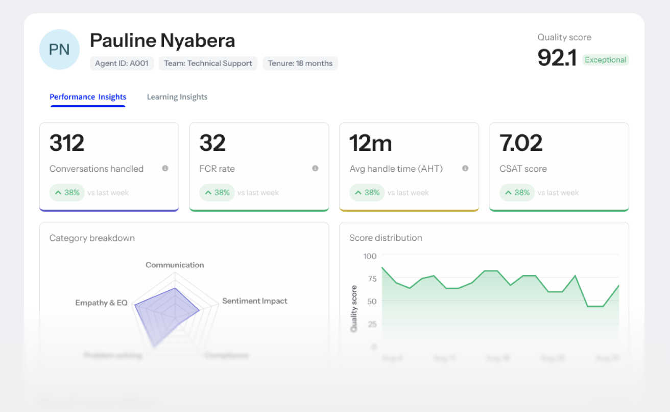 - Ensures every agent gets the exact support needed to improve